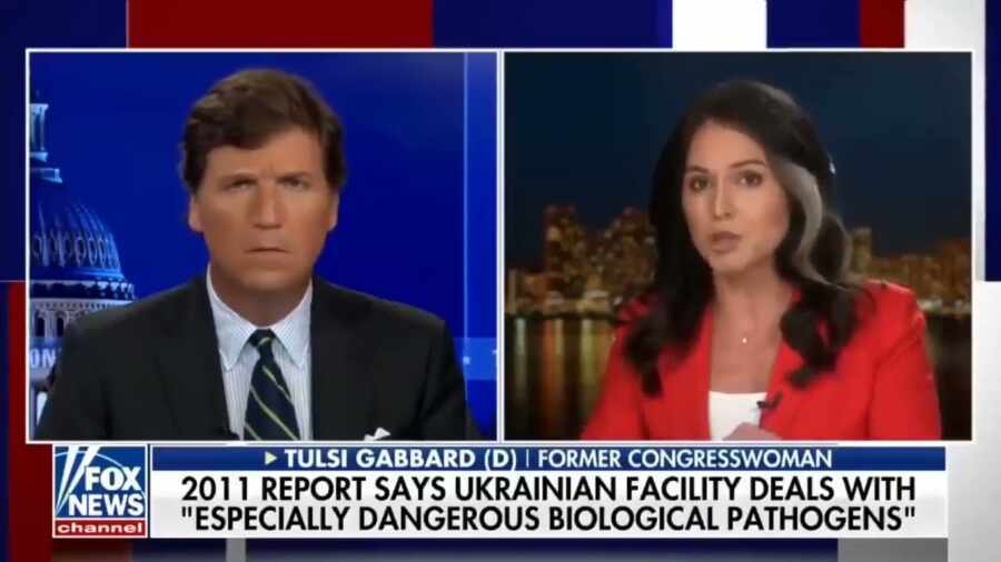Под ударом оказалась и Тулси Габбард — отставная конгрессвумен от Гавайев и один из немногих американских политиков-реалистов. У неё случилась перепалка с Миттом Ромни — тот обвинил её в предательстве за комментарии о биолабораториях. Причём Габбард всего лишь предложила расследовать эту историю и попытаться остановить утечку опасных патогенов в условиях украинского конфликта.