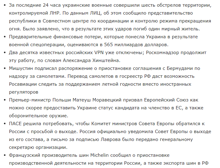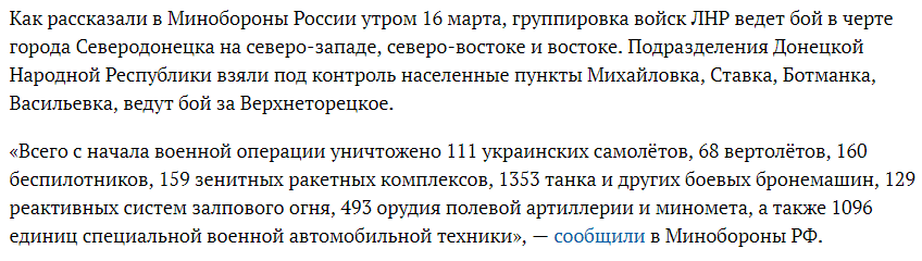 Срочные новости на 16 марта 2022 о ситуации в Украине, спецоперации на Донбассе