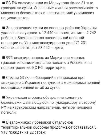 Вот главное из заявления Минобороны России (на вечер 16 марта):
