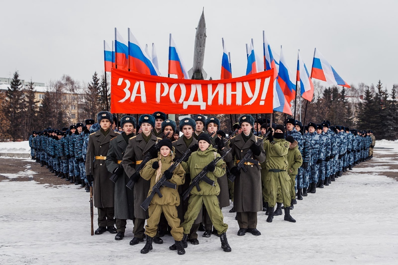 Юнармейцы школы 74 города Кемерово вместе с кадетами Губернаторская кадетская школа-интернат полиции и бойцами Пост №1 г.