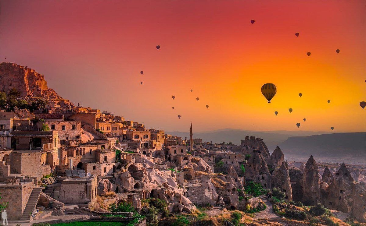 Начать путешествие по Каппадокии лучше с города Гёреме, который появился благодаря извержению трех вулканов, ныне не активных. Образовавшиеся скалы приспосабливались людьми под жилье, монастыри и сельскохозяйственные нужды. Но после того, как данные объекты дополнили список объектов всемирного наследия ЮНЕСКО, людей стали переселять в соседний город, а бывшие жилые дома превратились в уютные отели. В городе их великое множество, на любой вкус и бюджет. Одним из самых популярных отелей, в частности из-за прекрасной террасы на крыше с чудесным видом, является Goreme Palace Cave Suite. Комнаты здесь выполнены в аутентичном пещерном стиле, но несмотря на внешний вид, уровень сервиса находится на высоком европейском уровне.