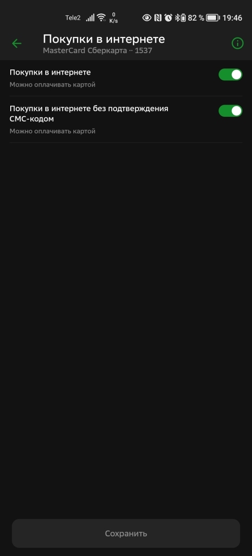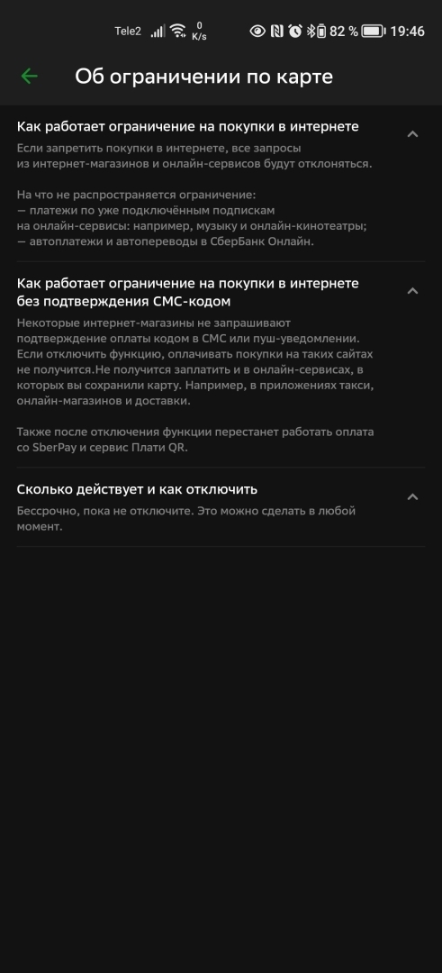 Как видно из скриншота, сбербанк нам говорит следующее - то что. Если запретить покупки, тогда все запросы из интернет-магазинов и онлайн - сервисов будут отклоняться. Это еще не всё, вы не сможете автоматически оплачивать услуги такси, доставку еды и оплачивать покупки через nfc.