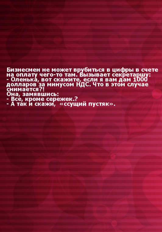 Явно по пьяни сборку делали 🥴. Где-то пол текста нет, где-то повторяется. Зря время потратила. Это не угарные анекдоты, а пепел от них.
