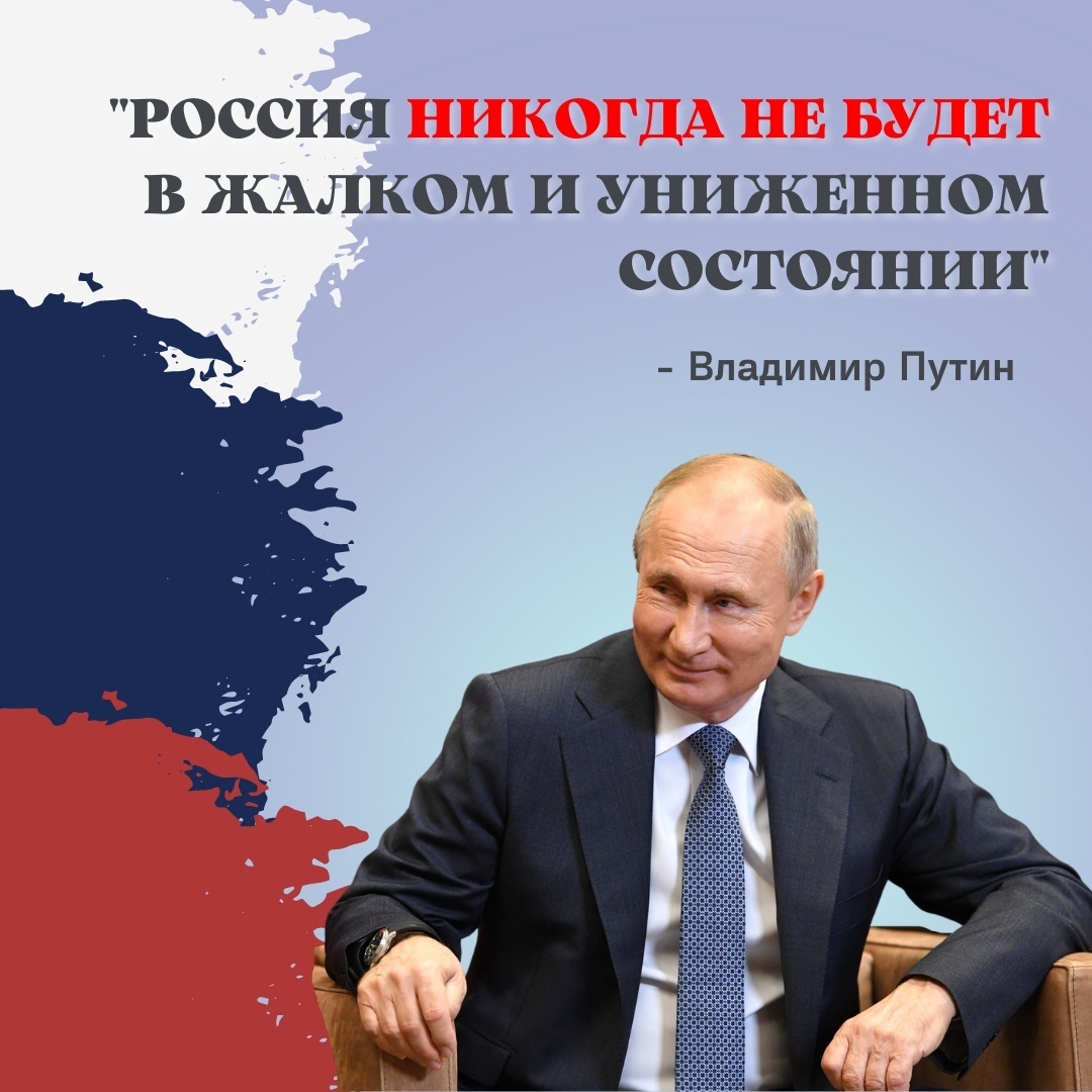 "Россия никогда не будет в жалком и униженном состоянии" - сказал Владимир Владимирович Путин.