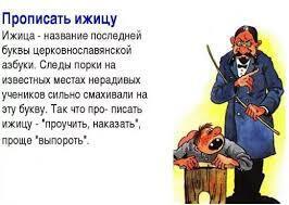 Ижица — последняя буква русского алфавита. обозначала гласный «и» в немногих словах греческого происхождения, исключена орфографической реформой 1917-18. восходит к кириллической букве . Прописать ижицу кому-нибудь (устар.) — высечь, сделать строгое внушение.
