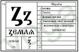 Буква земля происходит от греческой буквы «дзета» (Ζ, ζ ), а та — от финикийской «заин» (звук [з], значение — «оружие»). Возможно, финикийская буква через протосинайский алфавит