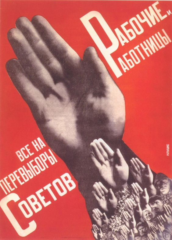 В России создатель новой утопии создает плакат, соответствующий духу времени.