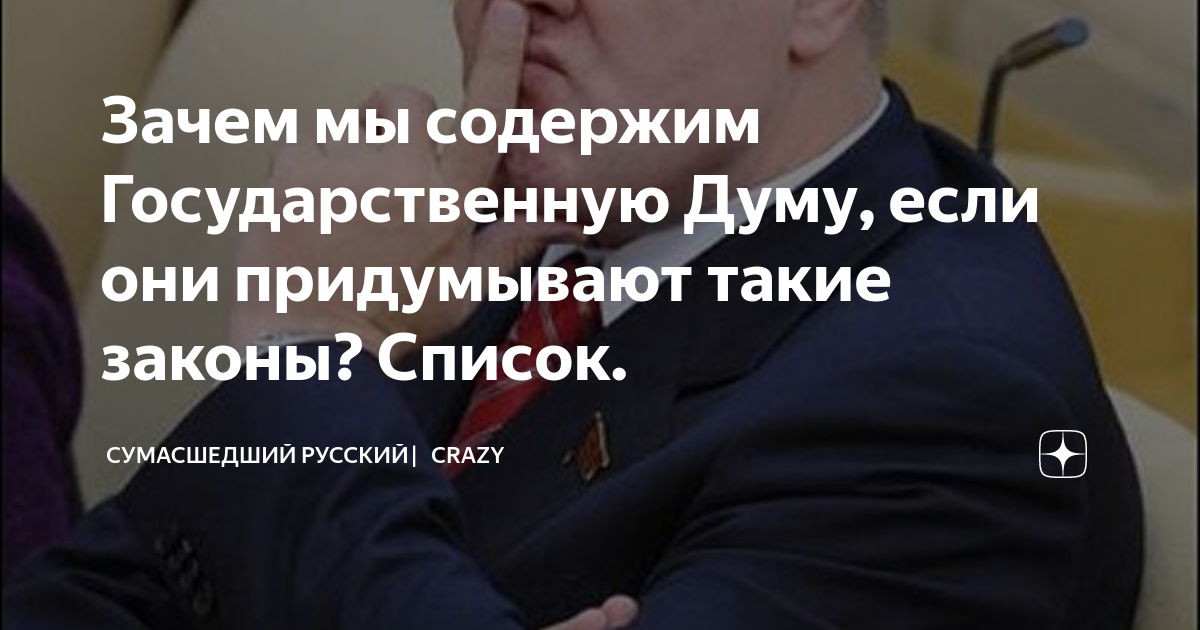 Я ещё не дотянула, чтобы обо не мне ДУМА задумалась)) А насчёт Вас- это Вы и показали, раз возмутились этим законом , мне он по фиг .