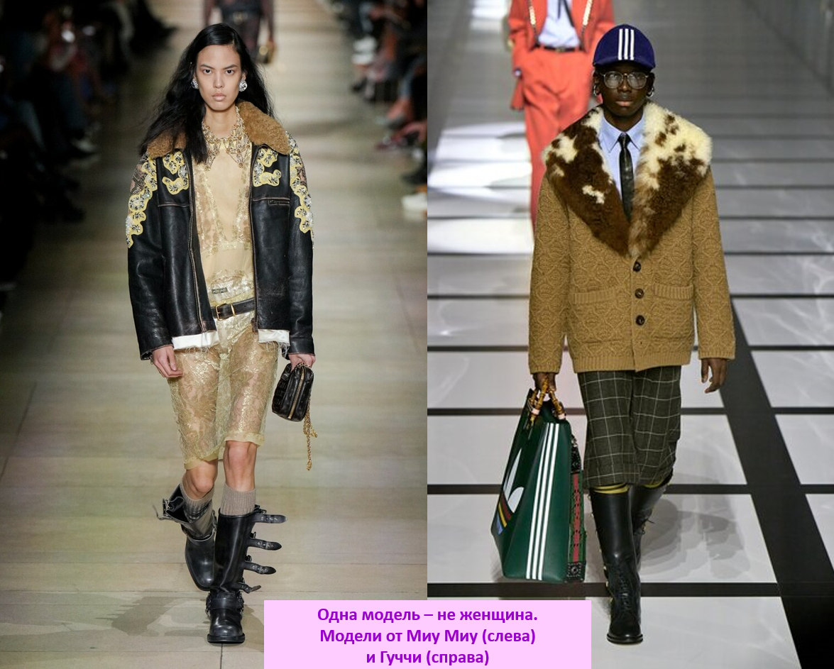 Тогда от кого? От Гуччи? О, там тоже модели отличные: если к ним приглядеться, то необходимость тратить кровные отпадет – юбка в клетку должна найтись у жены/матери/сестры/подруги/коллеги, а вязаная кофта, наверняка, молча дожидается возможности тряхнуть стариной и с гордостью выползти на белый свет, ну а воротник из кошки (или хотя бы из подстежки от старой куртки) нетрудно и самостоятельно соорудить.