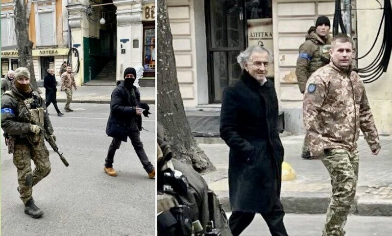 Бернар-Анри Леви и украинский военный губернатор Максим Марченко в Одессе 14 марта 2022 года. Фото взято с ресурса Яндекс. Картинки