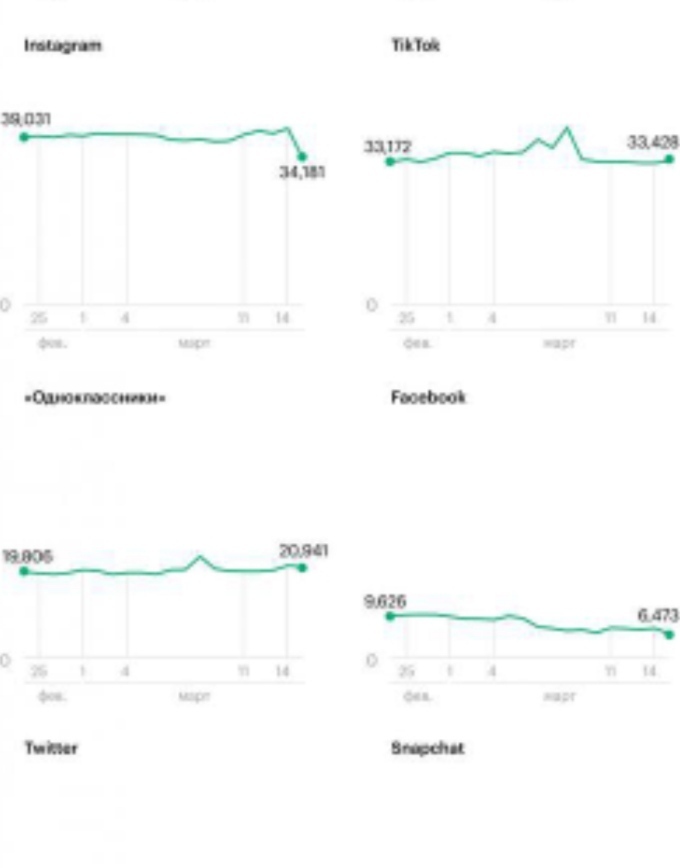 Газета РБК со ссылкой на обслуживание Mediascope докладывает, собственно что за 10 дней блокировки количество юзеров Facebook**** понизилось больше чем на 40%, а Instagram**** — на 16%.