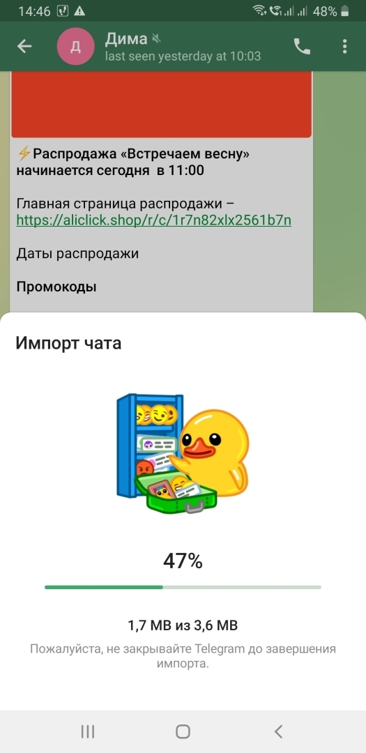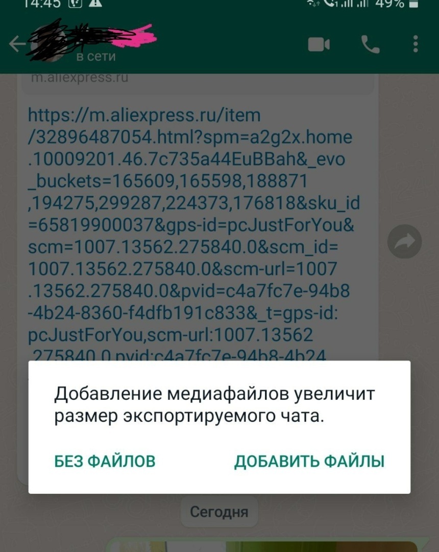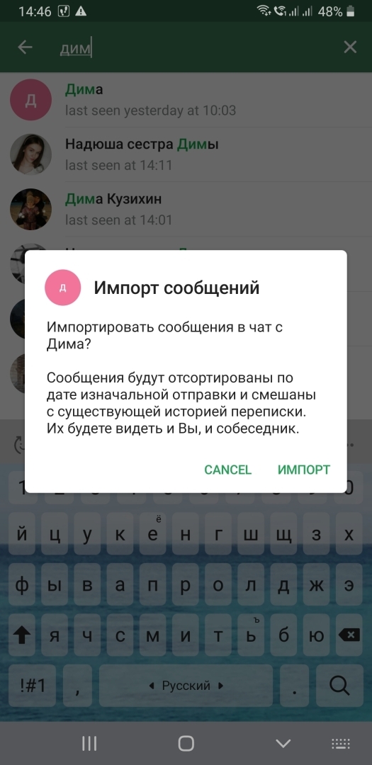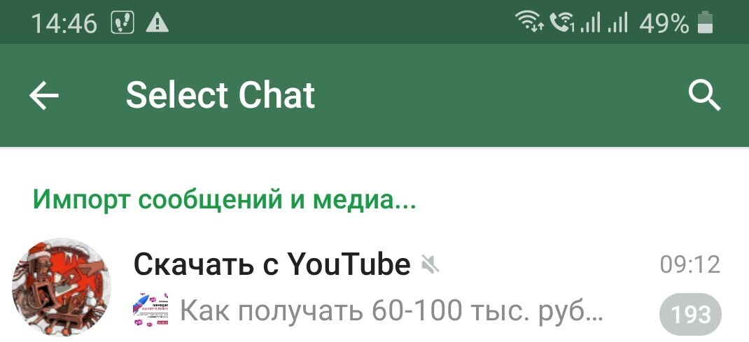 Внимание. Контакт, чат с которым переносится из WhatsApp, должен уже существовать в Telegram.