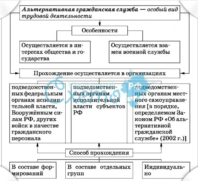 Альтернативная гражданская служба это особый вид трудовой деятельности в интересах общества и государства, осуществляемой гражданами взамен военной службы по призыву. Трудовая деятельность граждан, проходящих альтернативную гражданскую службу, регулируется Трудовым кодексом Российской Федерации с учетом особенностей, предусмотренных законом об АГС.