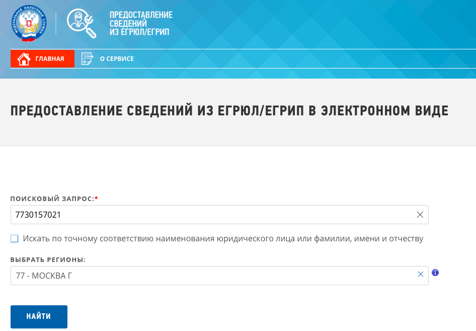 Расследование началось с сайта Федеральной налоговой службы России (ФНС РФ): есть там интересная и полезная функция – ПРОВЕРКА КОНТРАГЕНТА.