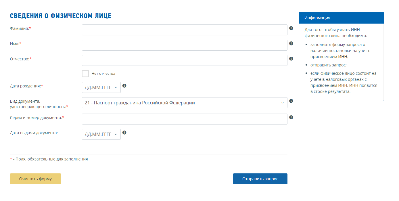 Заполняем паспортные данные и получаем нужный вам ИНН.