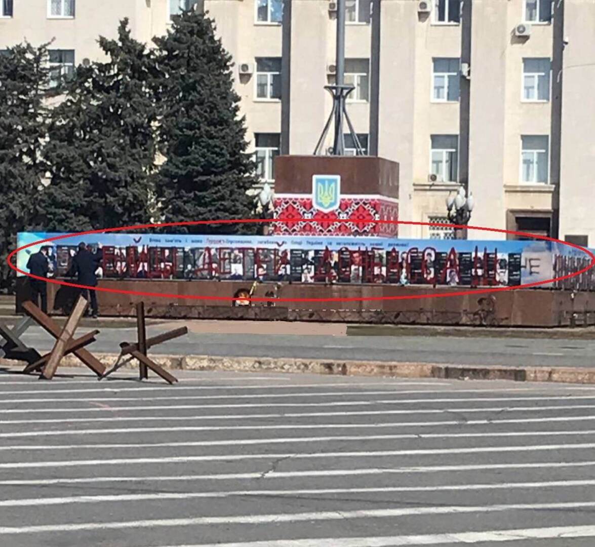 В Херсоне россияне написали на фотографиях АТОшников: "убийцы детей Донбасса"