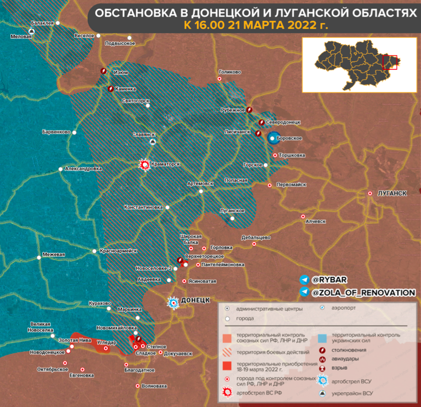 Обстановка на Донецко-Луганском направлении по состоянию на 21 марта 2022 года – 16:00