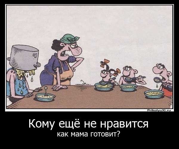 -« Ну а я что тебе говорил. Ты мне - готовить не умеешь, пересолил, картошку недоварил. Теперь ты согласна, что я приготовил хороший борщ?»