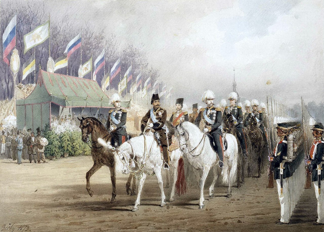 -В торжественных случаях, когда признаётся возможным дозволить украшение зданий флагами, был употребляем исключительно русский флаг, состоящий из трёх полос: верхней — белого, средней — синего и нижней — красного цветов; употребление же иностранных флагов допускать лишь по отношению к зданиям, занимаемым посольствами и консульствами иностранных держав, а также для тех случаев, когда для чествования приезжающих в Империю Членов царствующих династий и вообще почётных представителей иноземных Государств признано будет необходимым украсить дома флагами их национальности.