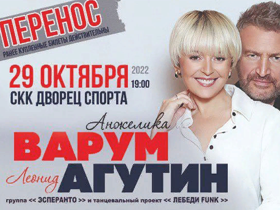 После отмены концерта Агутин сообщил в своем телеграмм - канале, что его переносят на 29 октября 2022 года, сославшись на заявление организаторов мероприятия, якобы сами фанаты звезд не хотят видеть их на сцене. А купленные билеты не пропадут.