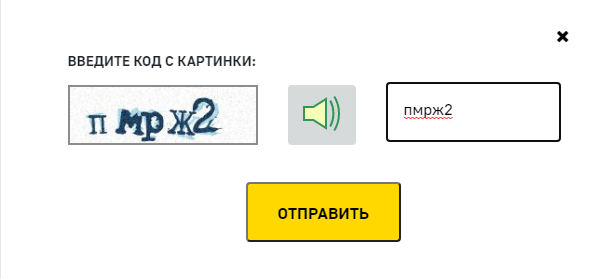 Далее нажимаем на кнопку "Найти" и получаем форму заполнения "капчи", вводим в окно ввода то что указано на картинке, ее можно озвучить нажав на иконку с изображением динамика или громкоговорителя.