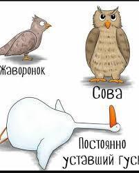 Я всегда был совой, а теперь в усталого гуся превратился... И ещё - помните рекламный ролик? "Маленьким совятам необходим вкусный завтрак", " А маленьким жаворонкам..." далее не помню что там было, но мне всегда хотелось продолжить словами: "надо дать крепкого тумака"