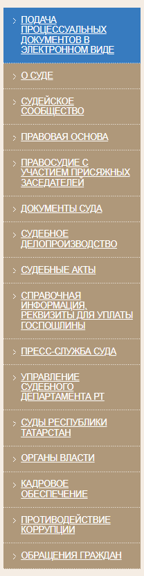 Нам на сайте суда необходимо найти меню, выглядит оно следующим образом.