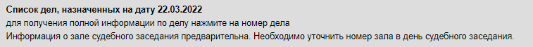 Да, согласен с тем что информации мало. В тоже время, информации хватает для того чтобы выяснить когда будет судебное заседание.