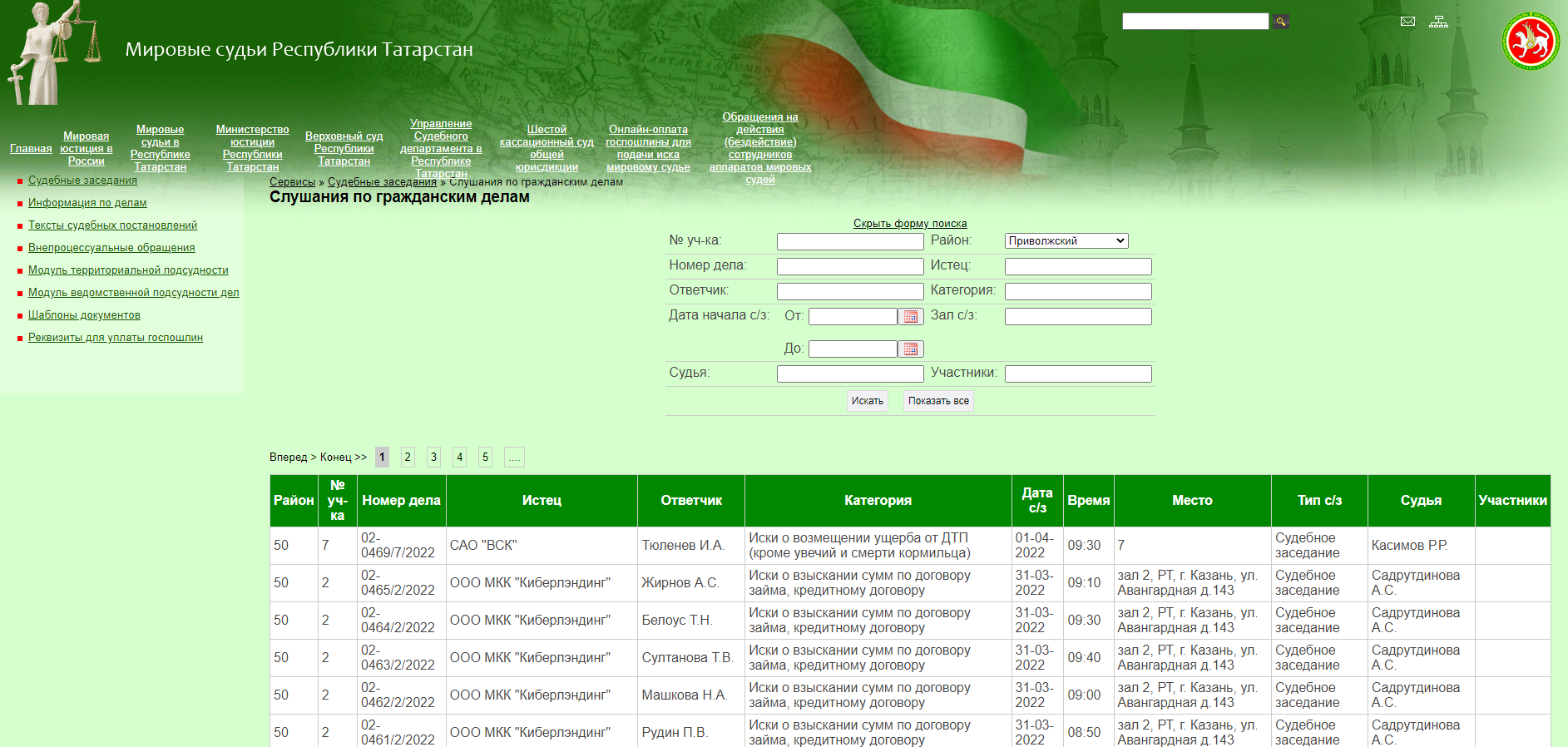 Итак, я знаю, какой суд мне искать. И я буду смотреть судебное делопроизводство по своему адресу подсудности. Так как я зарегистрирован в городе Казань, по ул. Карбышева, дом 59, в Приволжском районе, я буду искать Приволжский районный суд и перейду на сайт моего суда.