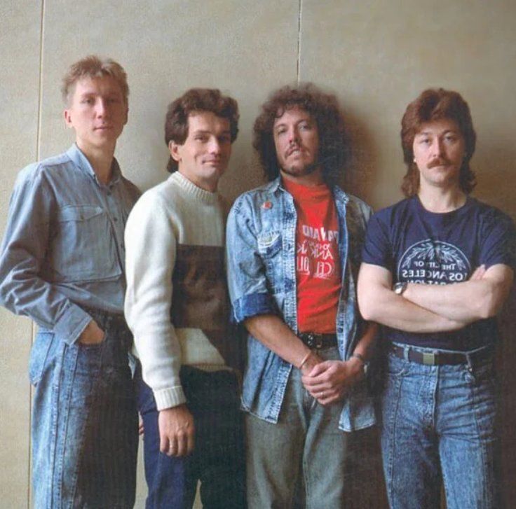 Выше на картинке представлена популярная советская рок-группа "Машина времени". Лидер и певец – советский певец Андрей Макаревич. Все они в популярной джинсе.