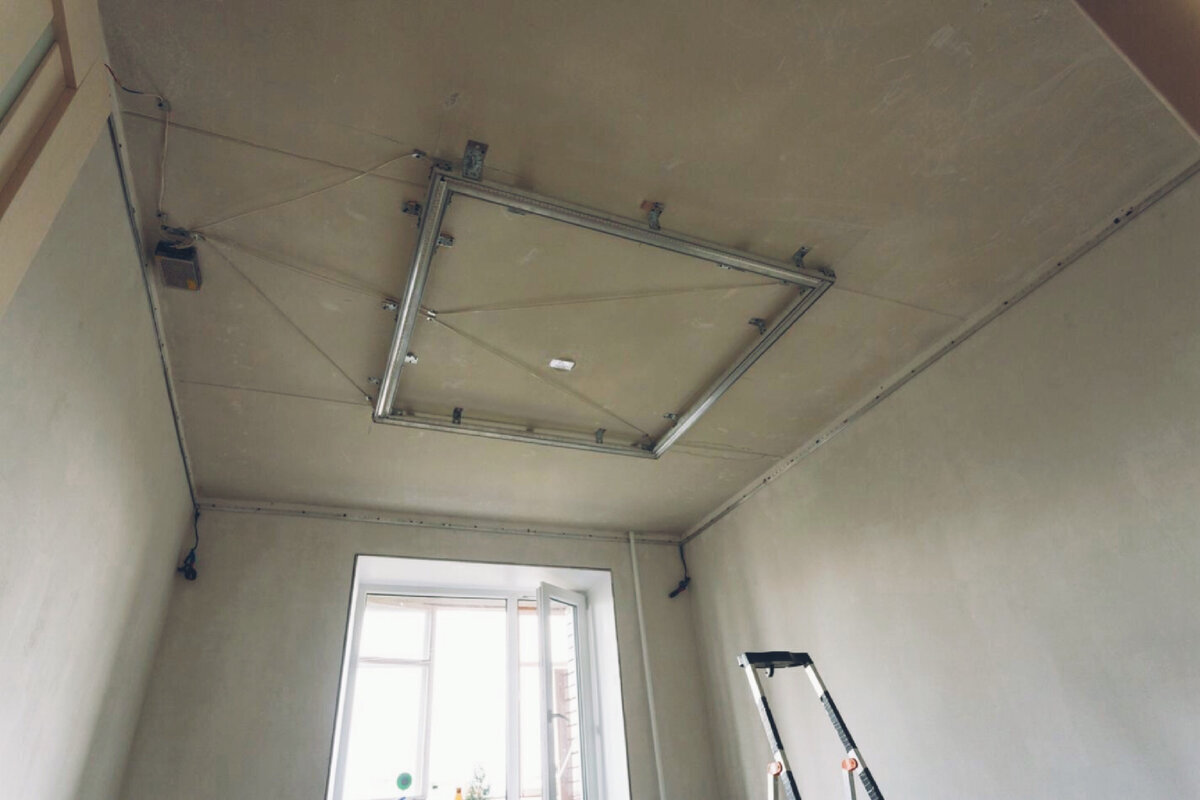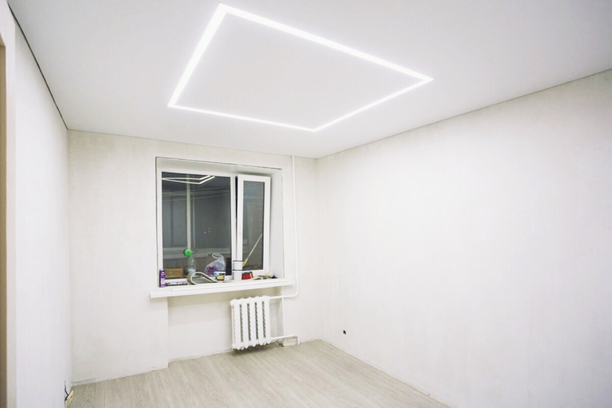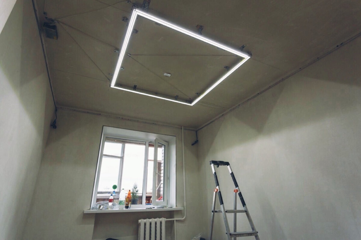 Потолок и установку лампы мы тоже поручили рабочим, поэтому особых подробностей поведать не могу. В общем, спустя сутки светодиодная конструкция и матовый натяжной потолок были готовы!