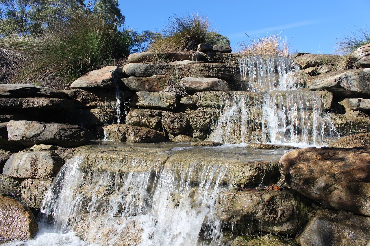 Камни выложенные на ручье небольшим каскадом, имитирующие водопад