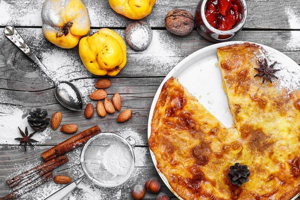 Идеальный выбор для вечернего общения с семьей: Рецепт вкуснейшего пирога с домашней айвой, грецкими орехами и корицей.