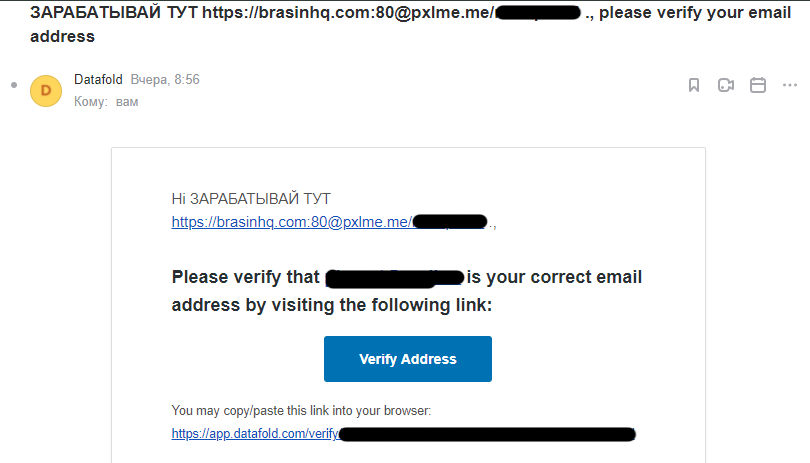 С 7 марта ко мне на почту активно стал приходить спам, с местами одинаковым содержанием по типу подтверждения аккаунта или "ЗАРАБАТЫВАЙ ТУТ https://xxx.com:80@pxlme.me:80@pxlme.me/123456789", где вместо xxx - различные доменные имена, а вместо 123456789 - определенная комбинация букв и цифр, в некоторых письмах, она совпадает. Не знаю, связанно ли это с тем что интернет-сталкер с которым я в конфликте пол года специально слил мой номер и почту в спам-базу, чтобы доставить мне неудобства (это уже другая история), но может быть кому то так же стал приходить спам и я не один? Я знаю про спам-базы, но не думаю что моя почта могла просто так быть слита, если только это не человек который преднамеренно это сделал. В любом случае, что посоветуете сделать?