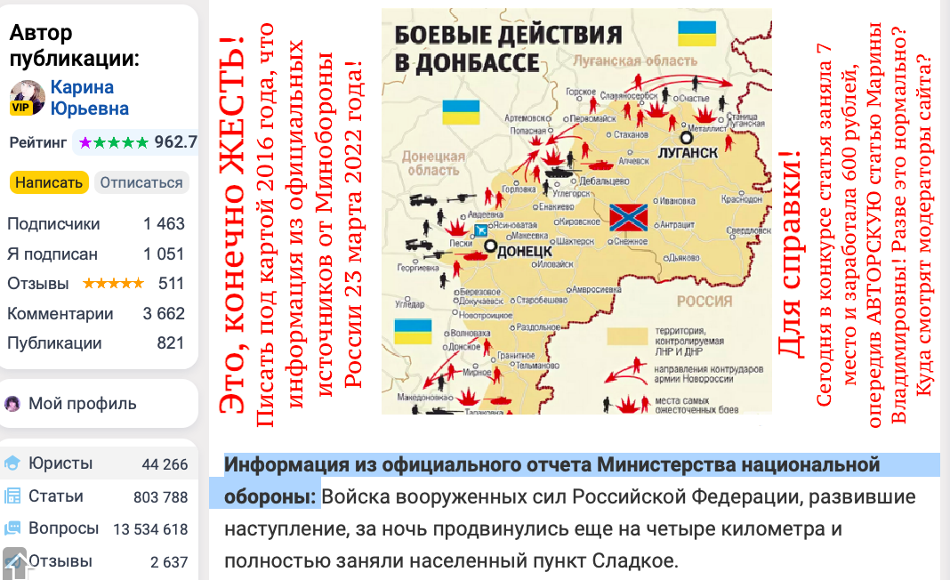 Многим авторам, публикующим свой авторский контент на различные актуальные темы уже надоело наблюдать за тем, как в конкурсе постоянно занимает первые места плагиат и одни и те же статьи о спецоперации на Украине, обмусоленные на сто рядов. Понятное дело, что сейчас такой контент очень востребован, но зачем дублировать его в конкурсе, да еще и в разных вариациях? Какой в этом смысл?