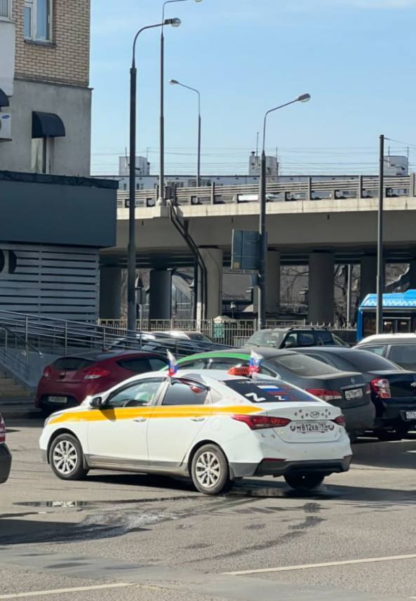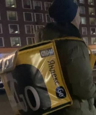 Яндекс начал клеить Z-наклейки на сумки курьеров и машины в такси