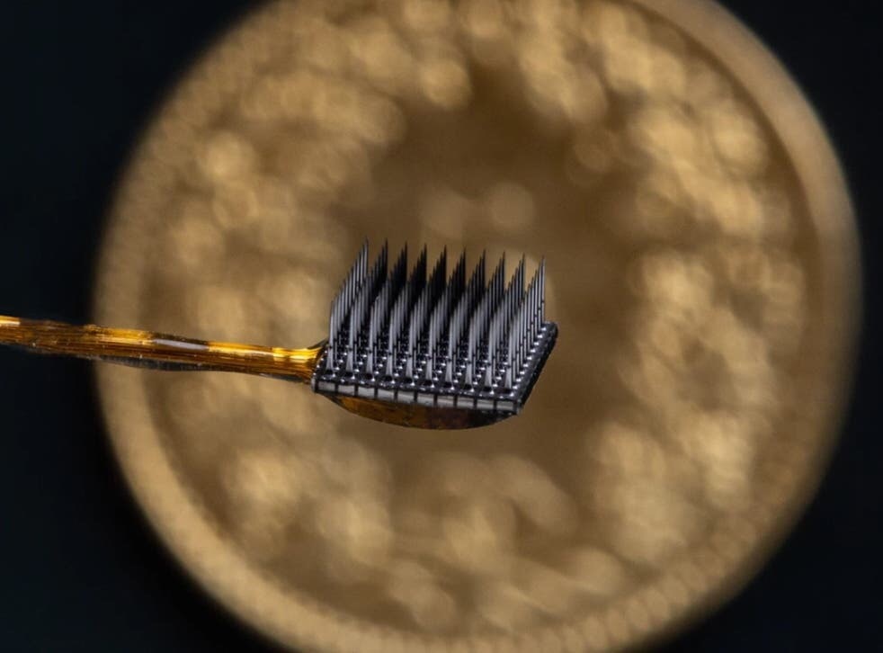 Две микроэлектродные матрицы, каждая площадью 3,2 мм, были вставлены в поверхность моторной коры в лобной доле головного мозга.