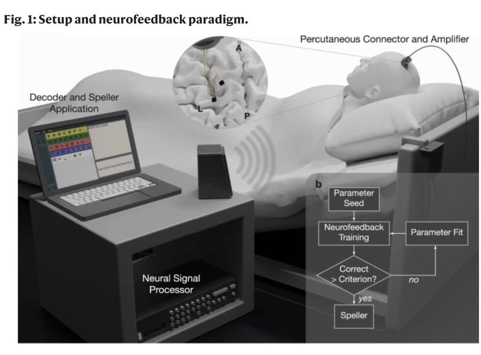 Пациенту была предоставлена слуховая обратная связь об уровнях нейронной активности через близлежащий динамик, что позволило ему настроить частоты для генерации ответов " да’ и ‘нет’.