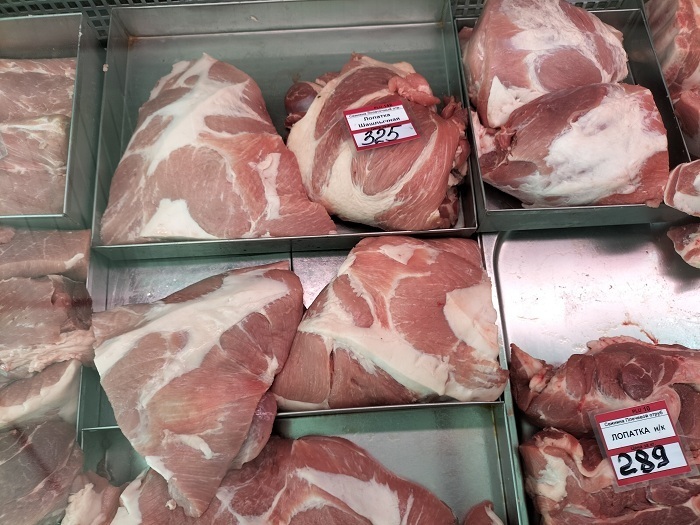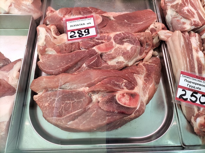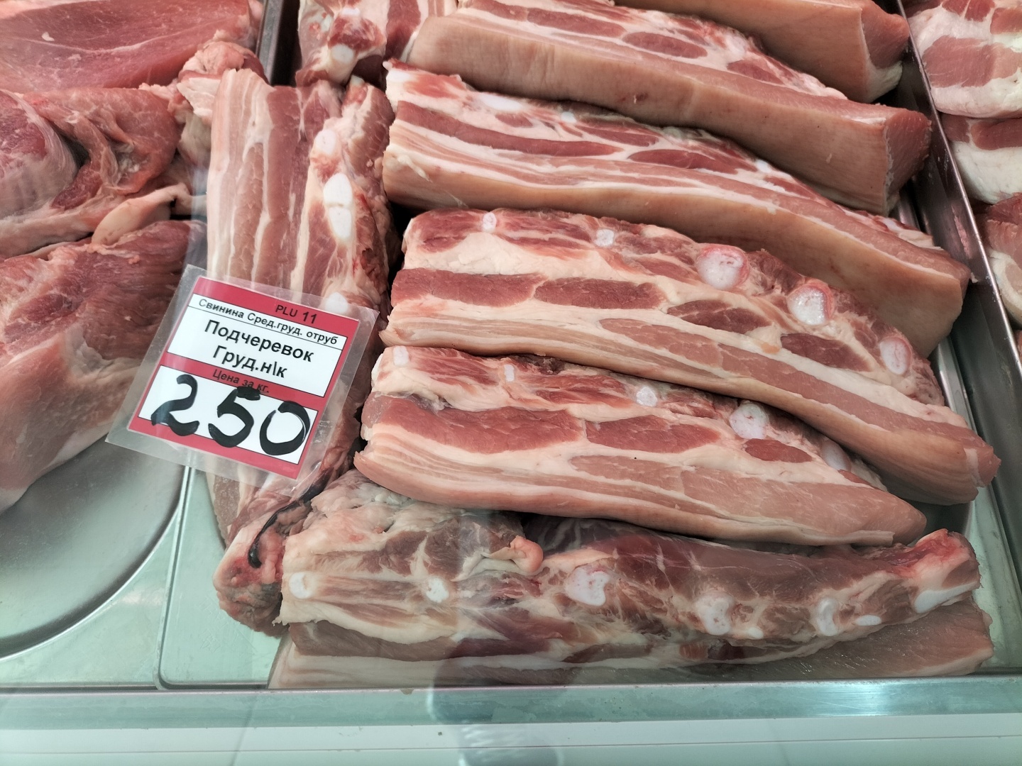 Далее смотрите свинина. Свежайшая, отличное мясо и такие же низкие цены.