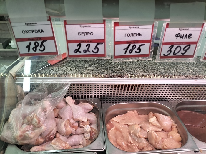 Показываю фотографии с ценниками на свинину и курицу. Начну пожалуй с курицы.