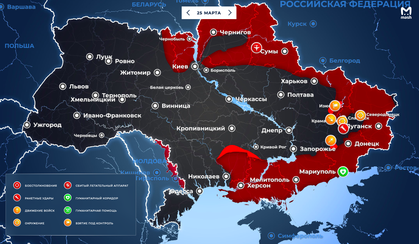 Карта боевых действий онлайн спецоперации России к 26 марта 2022
