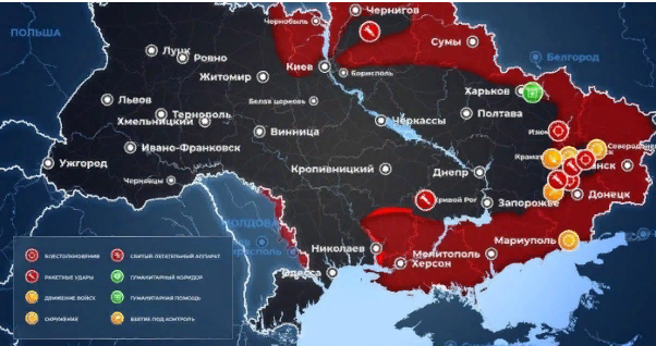 Обновленная карта проведения боевых действий на Украине 25 марта 2022 года