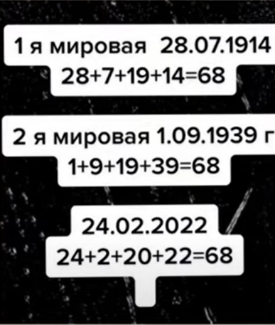 Сегодня поговорим о мистических совпадениях, которые обнаруживаются в датах мировых войн. И какое это имеет отношение к сегодняшним событиям.
