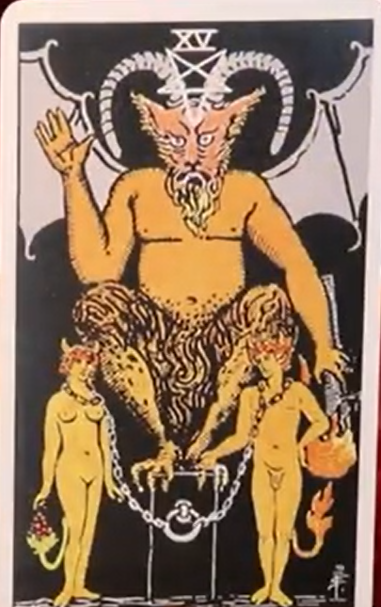 А что собой представляет Дьявол в картах Таро? Пентаграмма часто рисуется именно на этой карте, которой присвоен номер 15 и который символизирует Дьявола. Значение этого аркана — инстинкты, которые выходят из-под контроля. Символ всего материального, и главным образом преобладание материальных интересов. Саморазрушение, деградация и преобладание темных инстинктов. Злоупотребление силой. Отражает всю темную сторону остальных арканов. Дьявол отсылает нас к мифу о Люцифере, который светлым ангелом, но впал в гордыню и после этого он переродился вот в такое страшное существо.