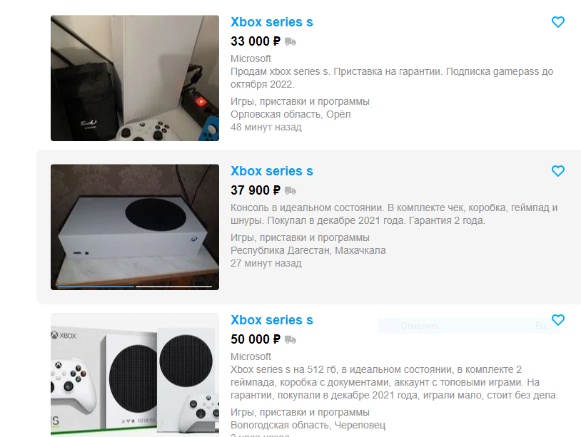 Xbox SS ,еще недавно эта коробочка стоила +-30 000, но после всего того, цены стали высоки.