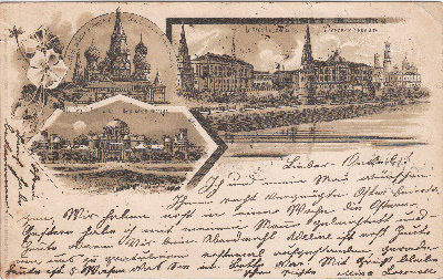 На первых российских иллюстрированных открытках конца 19 века размещают виды городов с подписью "с приветом" или "с поклоном".