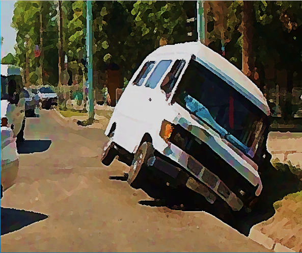 -Всё! Приехали!- выносит вердикт наш водитель. Открывает для пассажиров дверь, сам выскакивает из кабины и бежит по дороге вперед. Я выбрался из салона, вижу, метрах пятидесяти от нас – авария. Поперек дороги стоит бортовой УАЗик. Сбоку виден красный баллон (машина работает на газу). Чуть дальше пассажирская Газель, которая после столкновения слетела в кювет и сильно наклонилась на бок. Её правые колеса провалились в бетонную «дренажку».