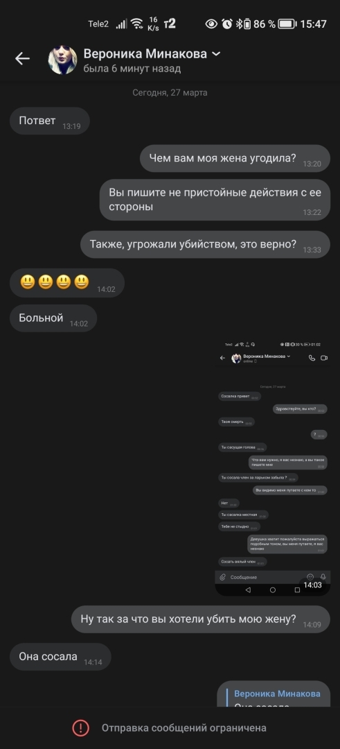 Вам пишет незнакомец или знакомый гражданин, пишет непристойные выражения при этом может и угрожать.