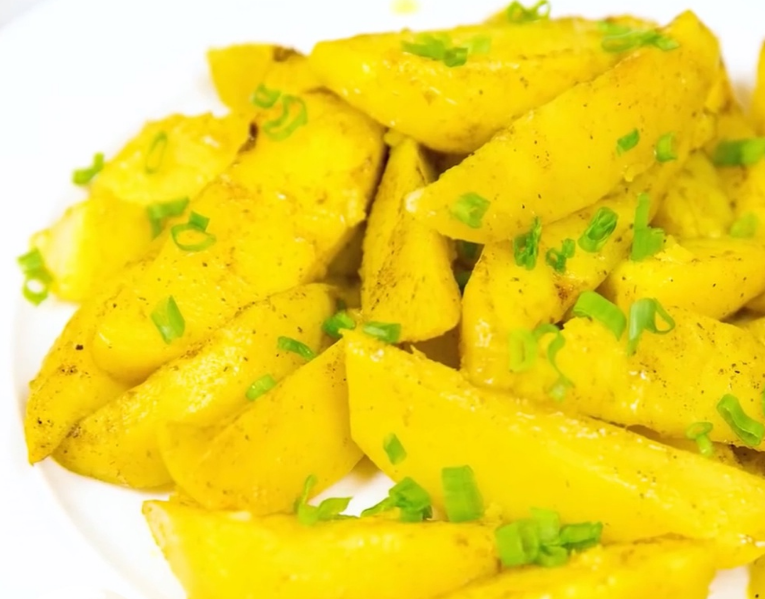 Берём 5-6 картофеля, режем и добавляем специи по вкусу. Ставим картошку в микроволновку под крышкой на 7 минут. Вытаскиваем, перемешиваем и отправляем в микроволновку ещё на 7 минут, также под крышкой. Оставляем картофель минут на 5 в выключившейся микроволновке.