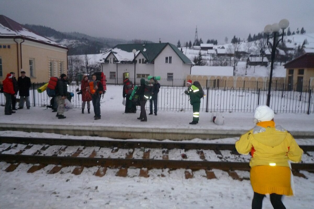 На фото я в желтой куртке. А станция называется Лавочне. Закарпатье 2012 год Новый год